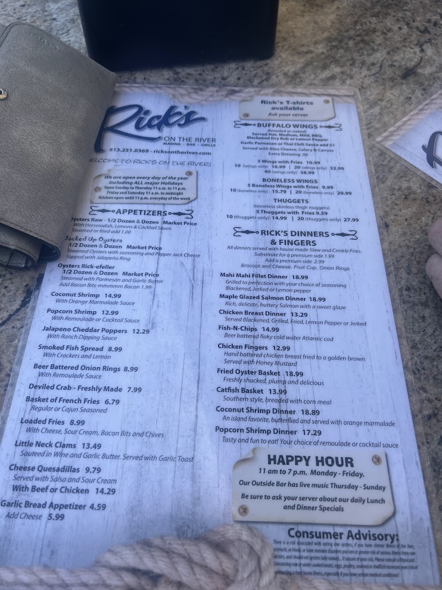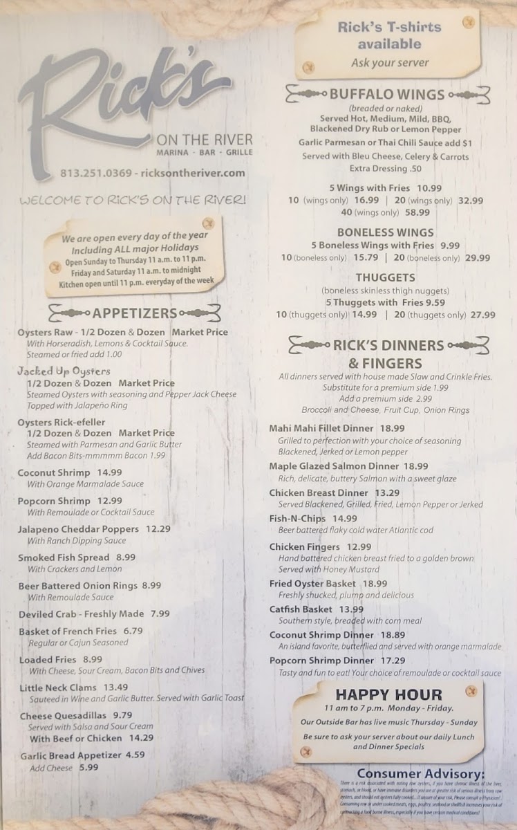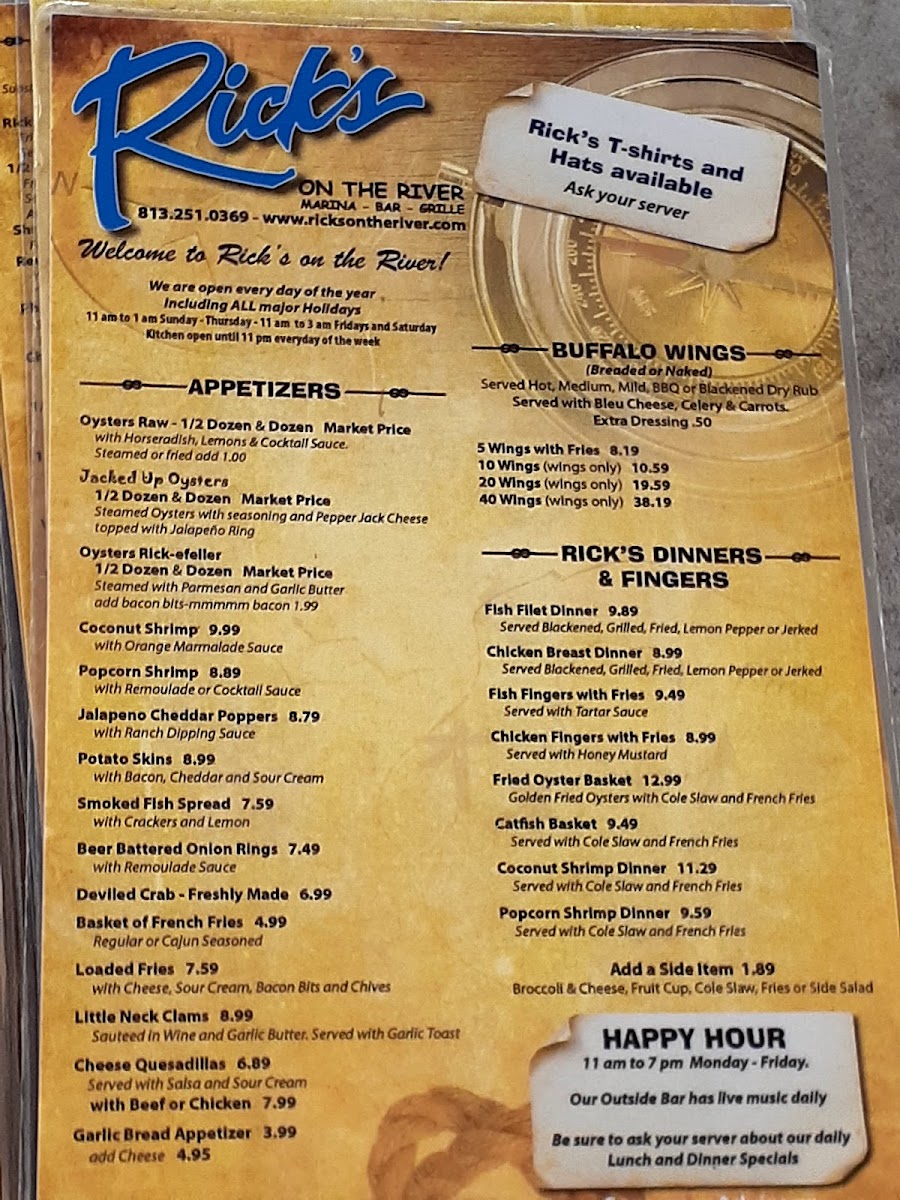 Welcome to Rick's on the River, a vibrant bar and grill nestled by the scenic Hillsborough River in Tampa, Florida. This unique venue perfectly embodies the Florida vibe, offering both indoor and expansive outdoor seating, complemented by live music for an entertaining dining experience.